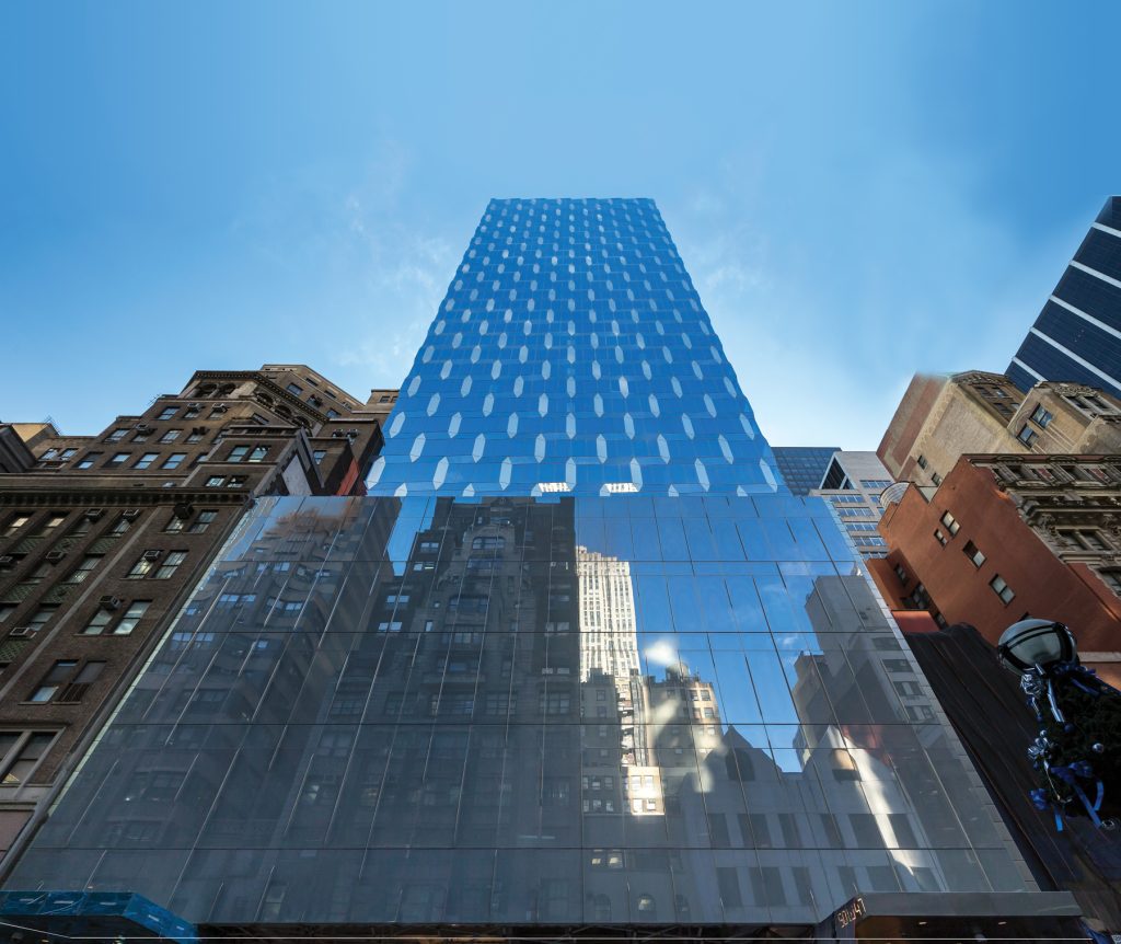 « Ce qui frappe au premier coup d’œil, c’est l’extérieur entièrement vitré du nouveau bâtiment. Il donne l’impression de se fondre dans la silhouette de New York comme s’il était invisible. Les motifs des fenêtres sont disposés de façon à reproduire des milliers de pierres précieuses », explique Louis-Alexandre Laferrière.